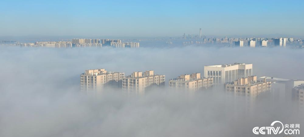 11月1日早晨,在低温和潮湿空气的共同作用下,北京亦庄一带出现浓雾天气,在林立的高楼间形成了十分壮观的海市蜃楼景观。