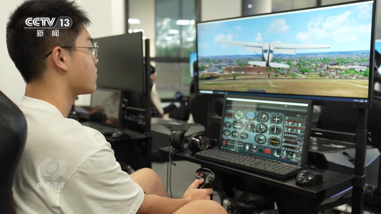 在北京航空航天大学沙河校区,低空技术与工程专业的20多名新生正在进行无人机起飞、侧风、顺风等五个阶段的飞行模拟训练,通过实操来强化对标准起落航线以及飞行操控规范的掌握。由于是首次训练,同学们的手指在操纵杆上的调整略显生涩,屏幕上的航线一度也偏离了预设轨迹。随后,在老师的实时指导下,同学们逐段修正航向,慢慢对操作节奏熟悉起来。